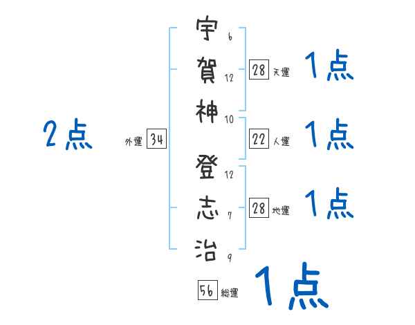 宇賀神登志治さんの画数の鑑定結果