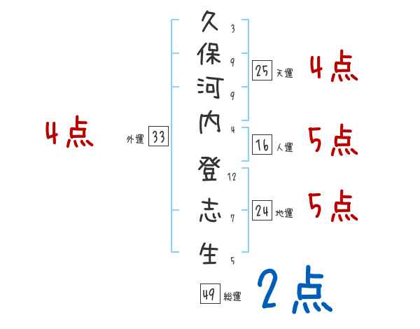 久保河内登志生さんの画数の鑑定結果