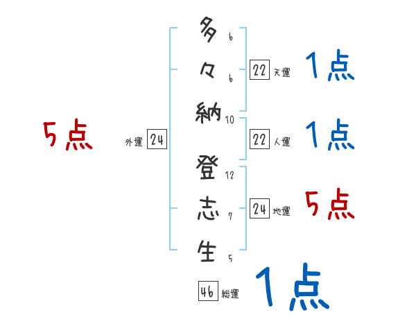 多々納登志生さんの画数の鑑定結果