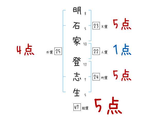 明石家登志生さんの画数の鑑定結果