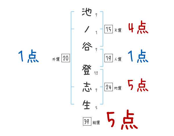 池ノ谷登志生さんの画数の鑑定結果