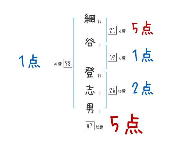 総運![]() | 網谷登志男さんの総運は47画の5つ星!実力が開花し発展する円満な人生。財に恵まれる。 あなたの人生を表す1番重要な運勢です。生涯を通じて影響する総合運となり、主に50歳以降の晩年期に影響を及ぼします。 |