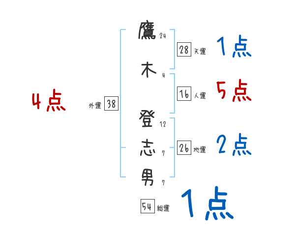 天運![]() | 鷹木登志男さんの天運は28画の1つ星!家庭環境に注意。スポーツで活躍できる能力があるかも。 家系が持つ宿命的な運勢を表します。祖先から受け継いだ苗字ですので自分の力が及びません。家柄を象徴します。 |