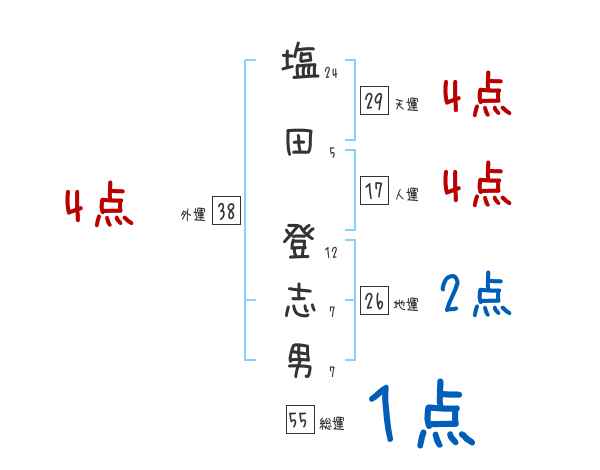 塩田登志男さんの画数の鑑定結果