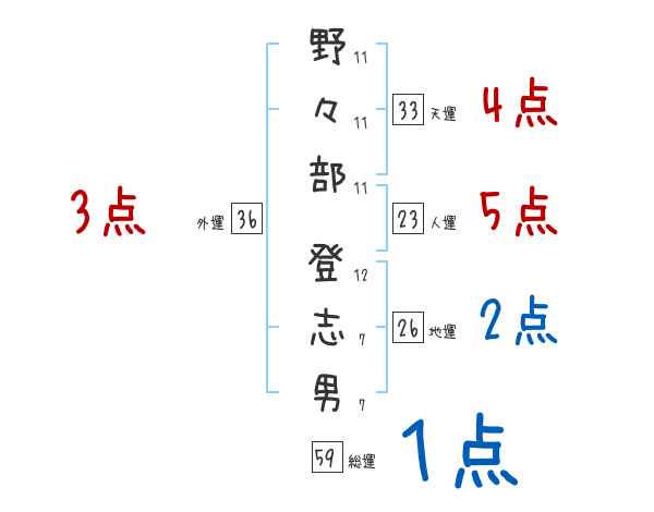 野々部登志男さんの画数の鑑定結果