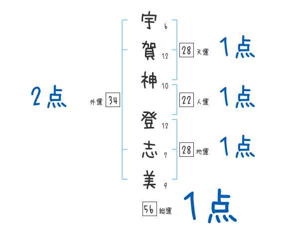 宇賀神登志美さんの画数の鑑定結果