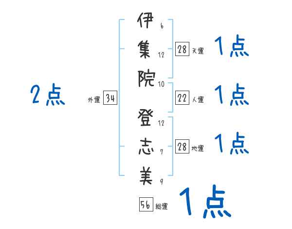 伊集院登志美さんの画数の鑑定結果