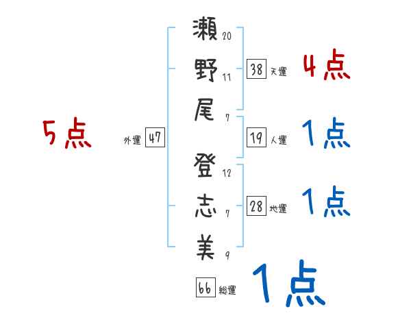 瀬野尾登志美さんの画数の鑑定結果