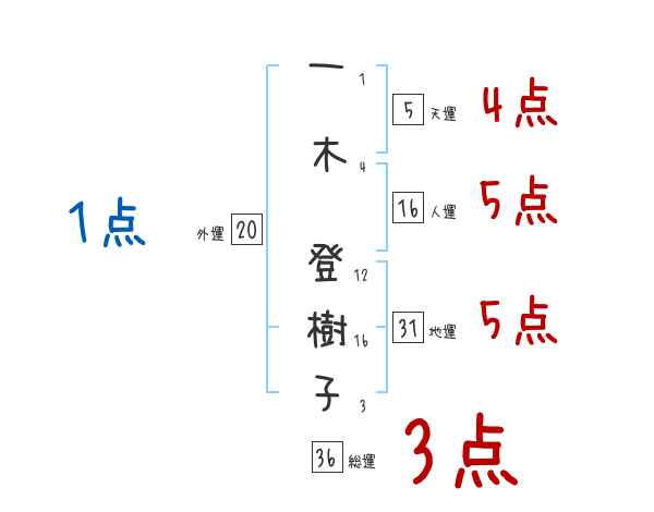 人運![]() | 一木登樹子さんの人運は16画の5つ星!人望が厚く大きく発展する。逆転成功が見える。 性格や才能などを表す2番目に重要な運勢です。人間関係や協調性、社会的な成功に影響します。主に20歳から50歳ぐらいまでの中年期の運勢を表します。 |