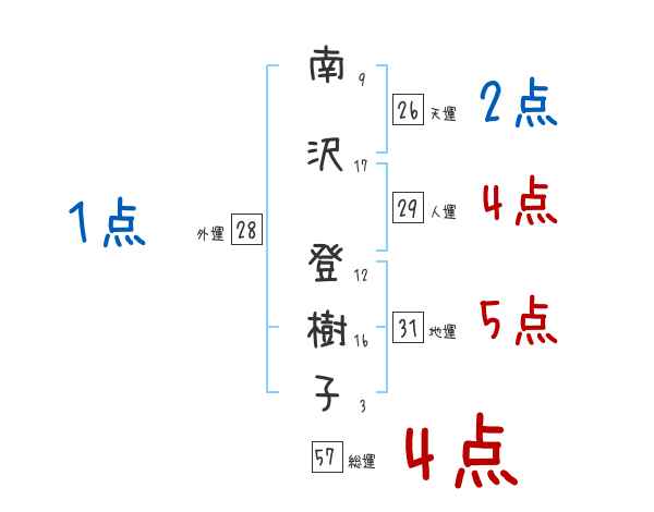 南沢登樹子さんの画数の鑑定結果