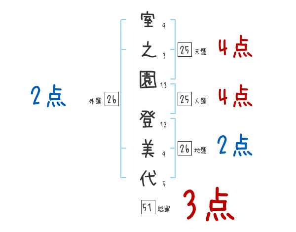 室之園登美代さんの画数の鑑定結果