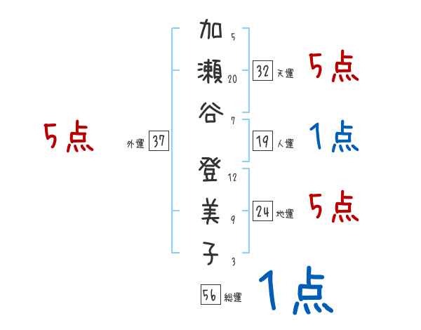 加瀬谷登美子さんの画数の鑑定結果
