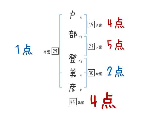 天運![]() | 戸部登美彦さんの天運は15画の4つ星!人徳があり出世する。順調に物事を進め円満な人生。 家系が持つ宿命的な運勢を表します。祖先から受け継いだ苗字ですので自分の力が及びません。家柄を象徴します。 |