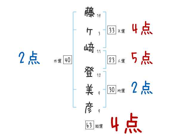 藤ヶ﨑登美彦さんの画数の鑑定結果