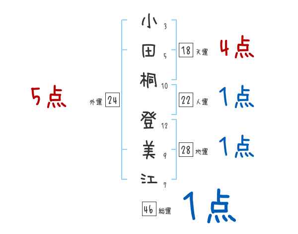 小田桐登美江さんの画数の鑑定結果