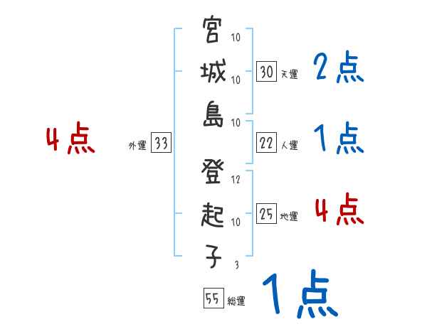 宮城島登起子さんの画数の鑑定結果