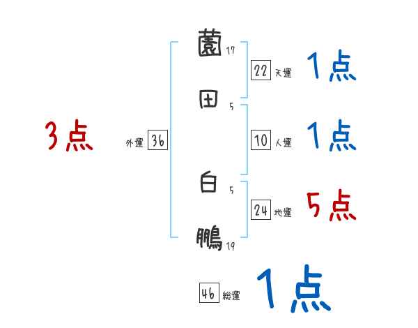 薗田白鵬さんの画数の鑑定結果