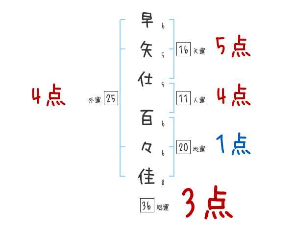 天運![]() | 早矢仕百々佳さんの天運は16画の5つ星!人望が厚く大きく発展する。逆転成功が見える。 家系が持つ宿命的な運勢を表します。祖先から受け継いだ苗字ですので自分の力が及びません。家柄を象徴します。 |