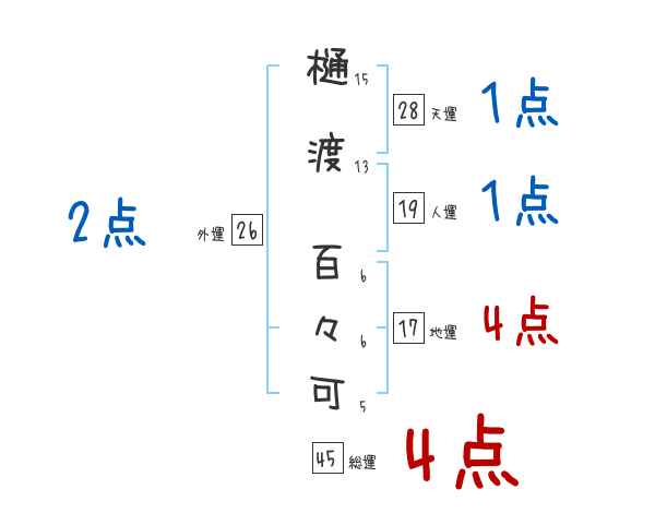 外運![]() | 樋渡百々可さんの外運は26画の2つ星!波瀾万丈かも。信頼できる人を大事にしましょう。 生活面を象徴する運勢です。外部から受ける影響力を表し、結婚運、家庭運や職場、環境への順応性を表します。 |