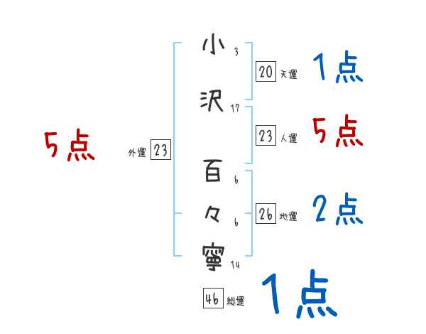 小沢百々寧さんの画数の鑑定結果