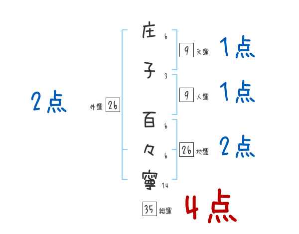 庄子百々寧さんの画数の鑑定結果