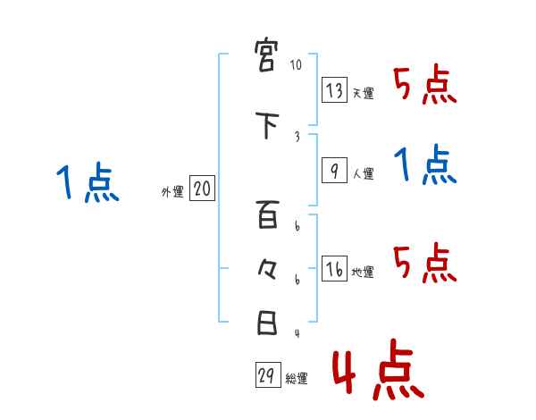 宮下百々日さんの画数の鑑定結果