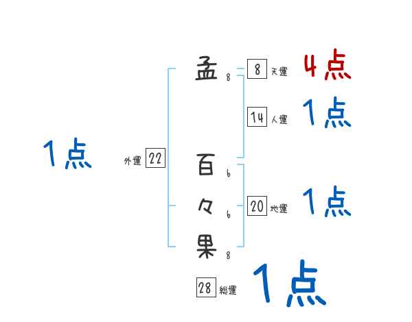 孟百々果さんの画数の鑑定結果