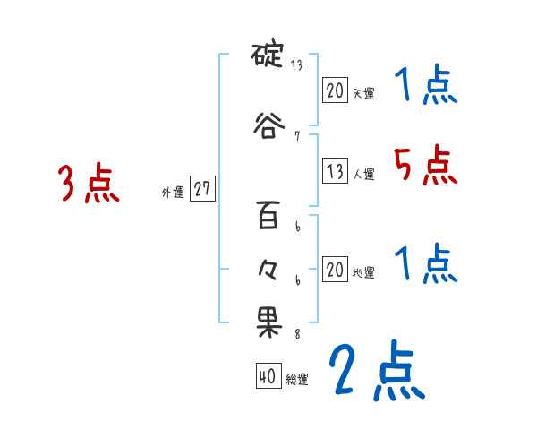人運![]() | 碇谷百々果さんの人運は13画の5つ星!才能に恵まれ人気がある。名声を手に入れる。円満な人生。 性格や才能などを表す2番目に重要な運勢です。人間関係や協調性、社会的な成功に影響します。主に20歳から50歳ぐらいまでの中年期の運勢を表します。 |
