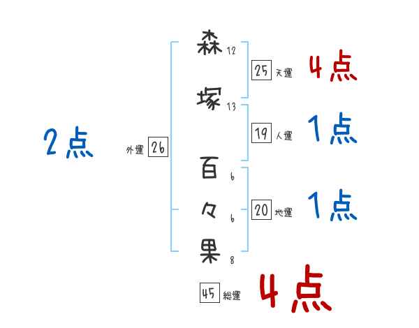 森塚百々果さんの画数の鑑定結果