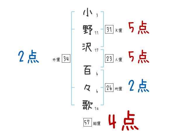 小野沢百々歌さんの画数の鑑定結果