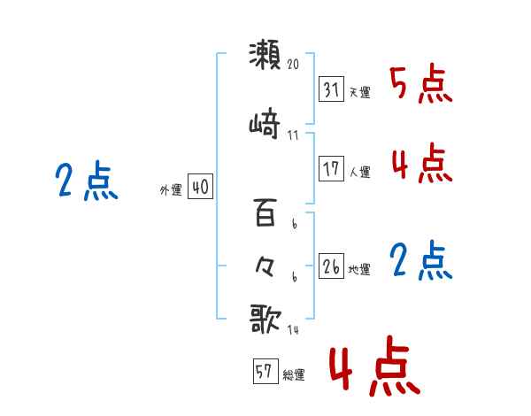 総運![]() | 瀬﨑百々歌さんの総運は57画の4つ星!向上心があり人望がある。地位を得る。 あなたの人生を表す1番重要な運勢です。生涯を通じて影響する総合運となり、主に50歳以降の晩年期に影響を及ぼします。 |