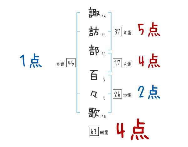 人運![]() | 諏訪部百々歌さんの人運は17画の4つ星!積極的な行動力。地位を気づき財産を手に入れる。純粋な心と直感力。 性格や才能などを表す2番目に重要な運勢です。人間関係や協調性、社会的な成功に影響します。主に20歳から50歳ぐらいまでの中年期の運勢を表します。 |