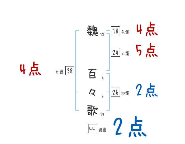 天運![]() | 魏百々歌さんの天運は18画の4つ星!情熱的で剛気。忍耐力があり信頼される。 家系が持つ宿命的な運勢を表します。祖先から受け継いだ苗字ですので自分の力が及びません。家柄を象徴します。 |