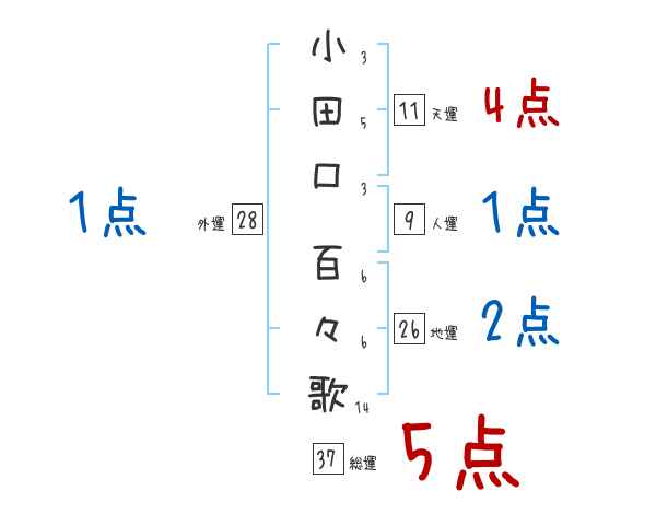 小田口百々歌さんの画数の鑑定結果