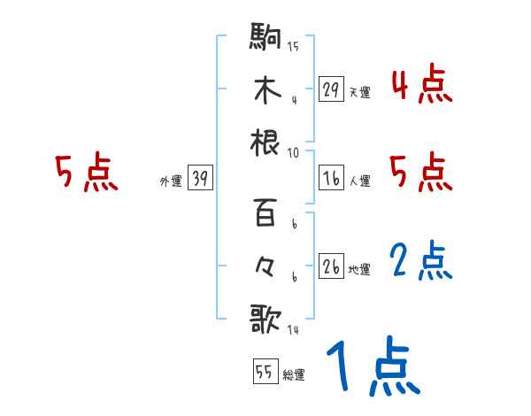 駒木根百々歌さんの画数の鑑定結果