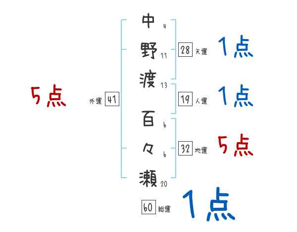 中野渡百々瀬さんの画数の鑑定結果