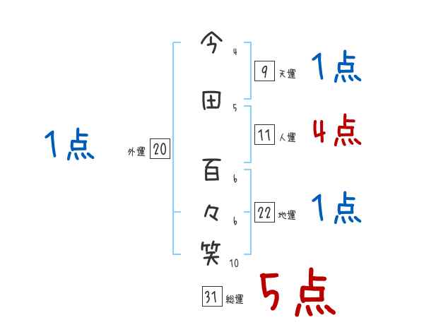 今田百々笑さんの画数の鑑定結果