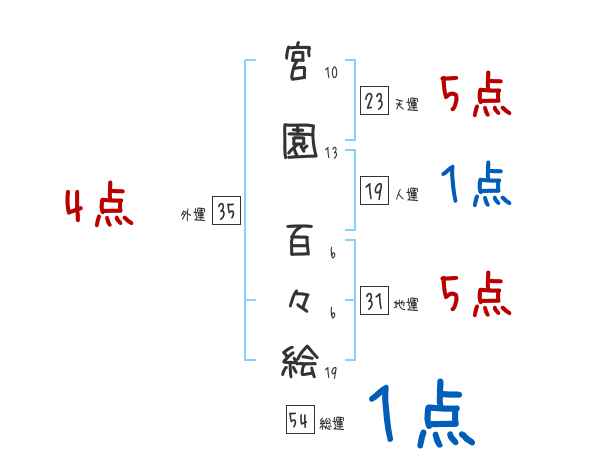 外運![]() | 宮園百々絵さんの外運は35画の4つ星!温厚な性格で感受性が高い。穏和な性格で人望が厚い。 生活面を象徴する運勢です。外部から受ける影響力を表し、結婚運、家庭運や職場、環境への順応性を表します。 |