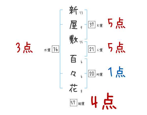 総運![]() | 新屋敷百々花さんの総運は57画の4つ星!向上心があり人望がある。地位を得る。 あなたの人生を表す1番重要な運勢です。生涯を通じて影響する総合運となり、主に50歳以降の晩年期に影響を及ぼします。 |