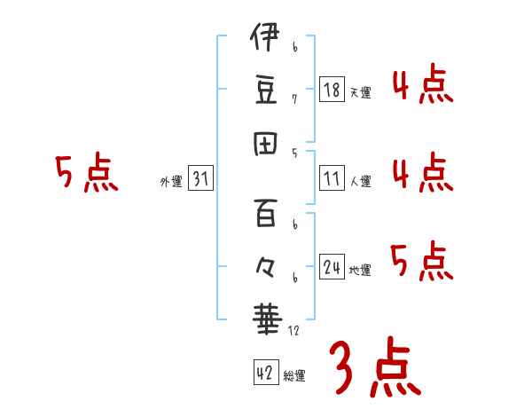 総運![]() | 伊豆田百々華さんの総運は42画の3つ星!病気に注意。多芸であるが消極的でおとなしい。 あなたの人生を表す1番重要な運勢です。生涯を通じて影響する総合運となり、主に50歳以降の晩年期に影響を及ぼします。 |