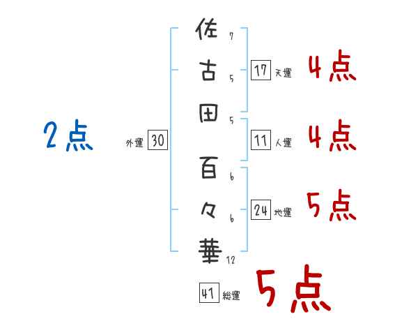 佐古田百々華さんの画数の鑑定結果