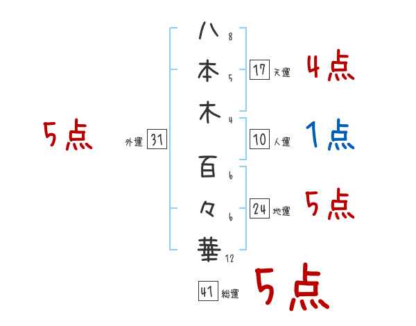 外運![]() | 八本木百々華さんの外運は31画の5つ星!社交性があり判断力に優れる。順風満帆な人生で円満な生活。 生活面を象徴する運勢です。外部から受ける影響力を表し、結婚運、家庭運や職場、環境への順応性を表します。 |