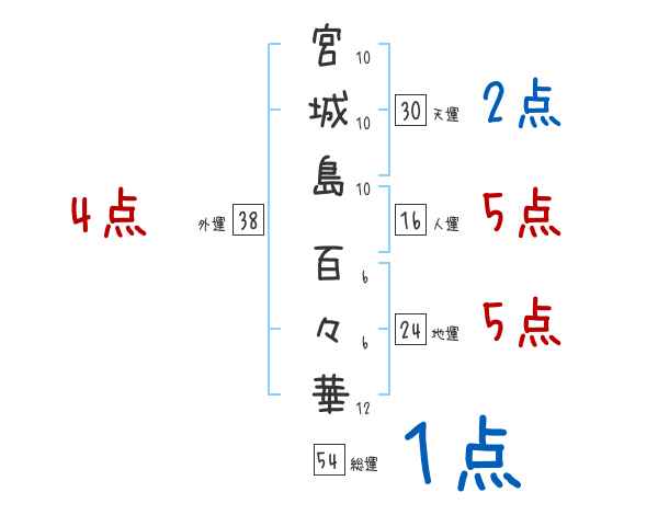 宮城島百々華さんの画数の鑑定結果