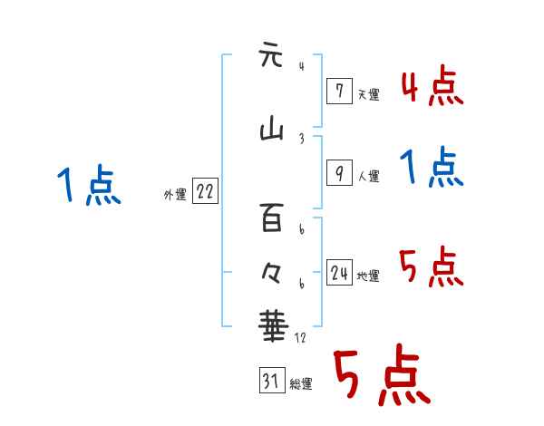 外運![]() | 元山百々華さんの外運は22画の1つ星!努力することが苦手ないっぽう手先が器用。芸術性にも優れる。 生活面を象徴する運勢です。外部から受ける影響力を表し、結婚運、家庭運や職場、環境への順応性を表します。 |