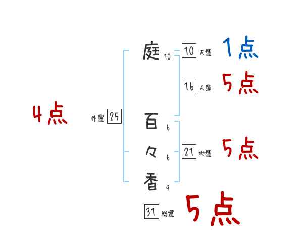 庭百々香さんの画数の鑑定結果