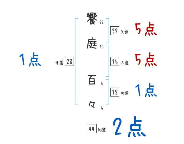饗庭百々さんの画数の鑑定結果