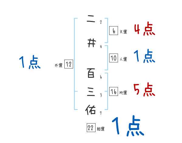 二井百三佑さんの画数の鑑定結果