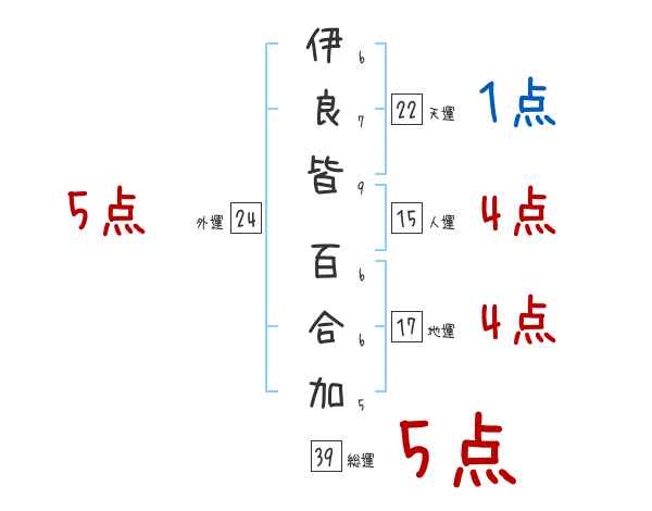 外運![]() | 伊良皆百合加さんの外運は24画の5つ星!家庭運が良く順調な人生。金運にも恵まれる。 生活面を象徴する運勢です。外部から受ける影響力を表し、結婚運、家庭運や職場、環境への順応性を表します。 |