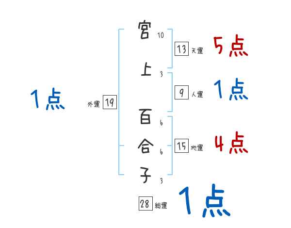 宮上百合子さんの画数の鑑定結果