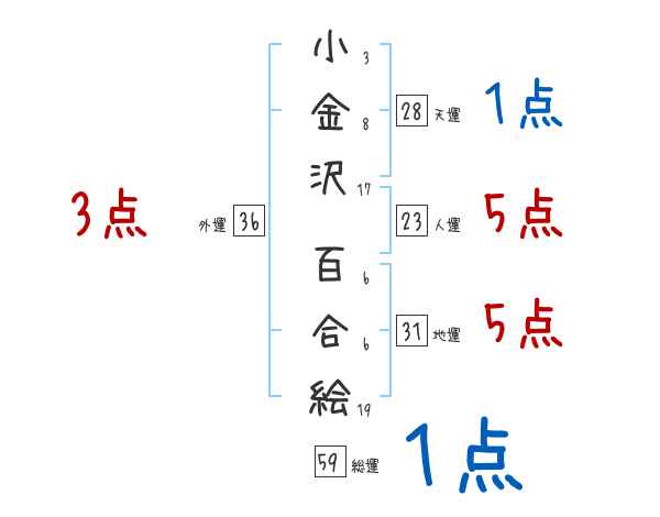 小金沢百合絵さんの画数の鑑定結果